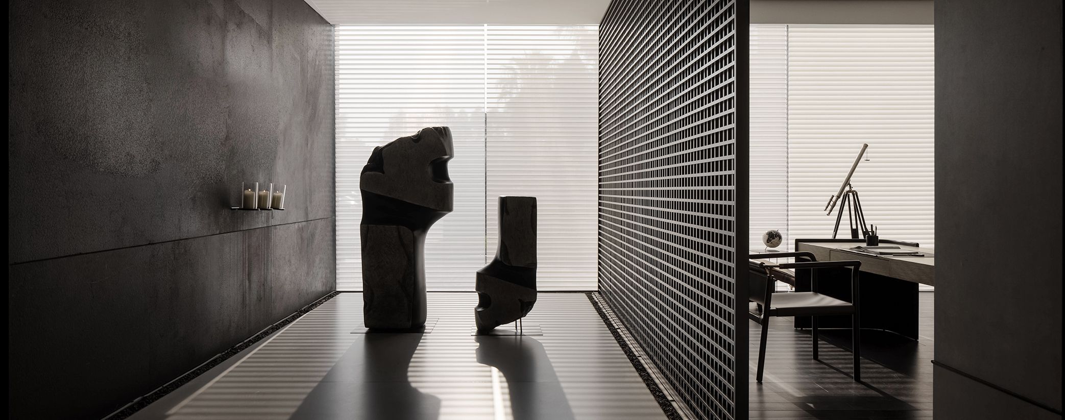 秉承建筑設(shè)計的理性精神,將空間量體、工藝細節(jié)、光影變化等元素植入建筑空間,使空間呈現(xiàn)出一種既磅礴又細膩的美感
