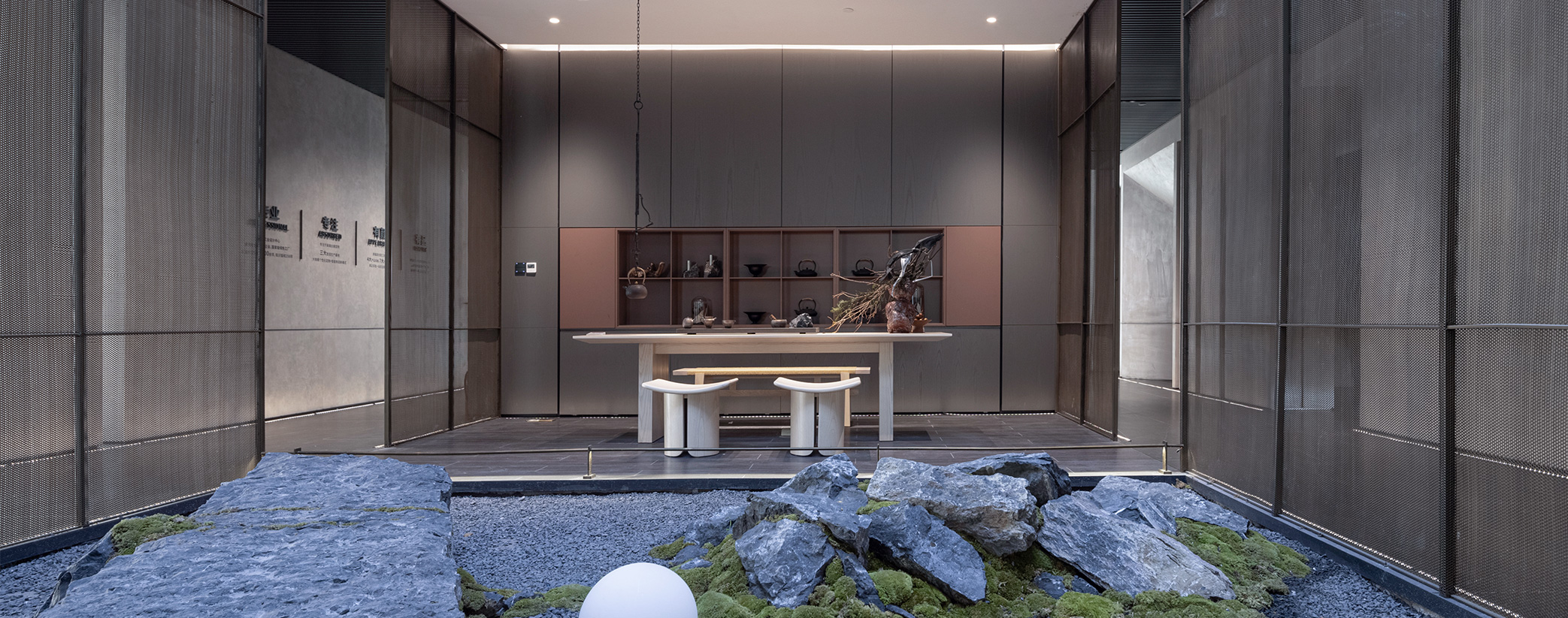 在唐忠漢的妙筆之下,以理想性的藝術(shù)構(gòu)建為邏輯,建立了一方和諧自然的美學(xué)天地,呼應(yīng)著心境與自然萬象的關(guān)聯(lián),榮獲了環(huán)球設(shè)計2023年度最佳定制展廳設(shè)計獎