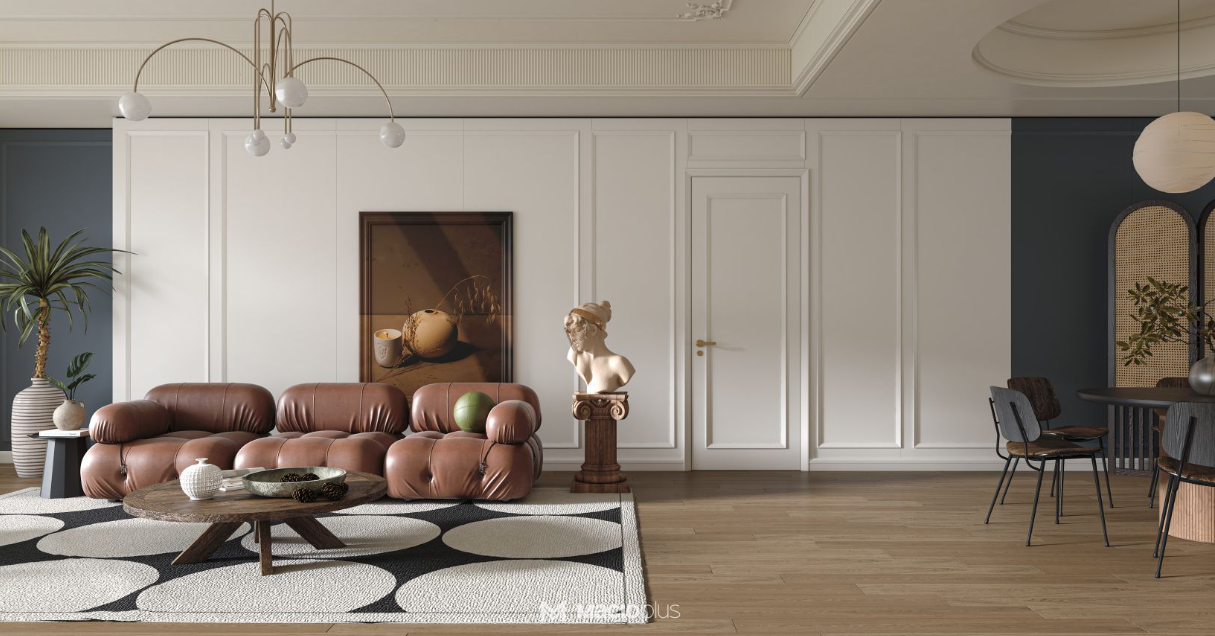 瑪格方案:瑪格不僅能做深柜,還能通過門墻柜一體的設(shè)計,將整個墻面進行木作包裹,實現(xiàn)全案設(shè)計落地,讓深柜體完美融入整體裝修風格中。