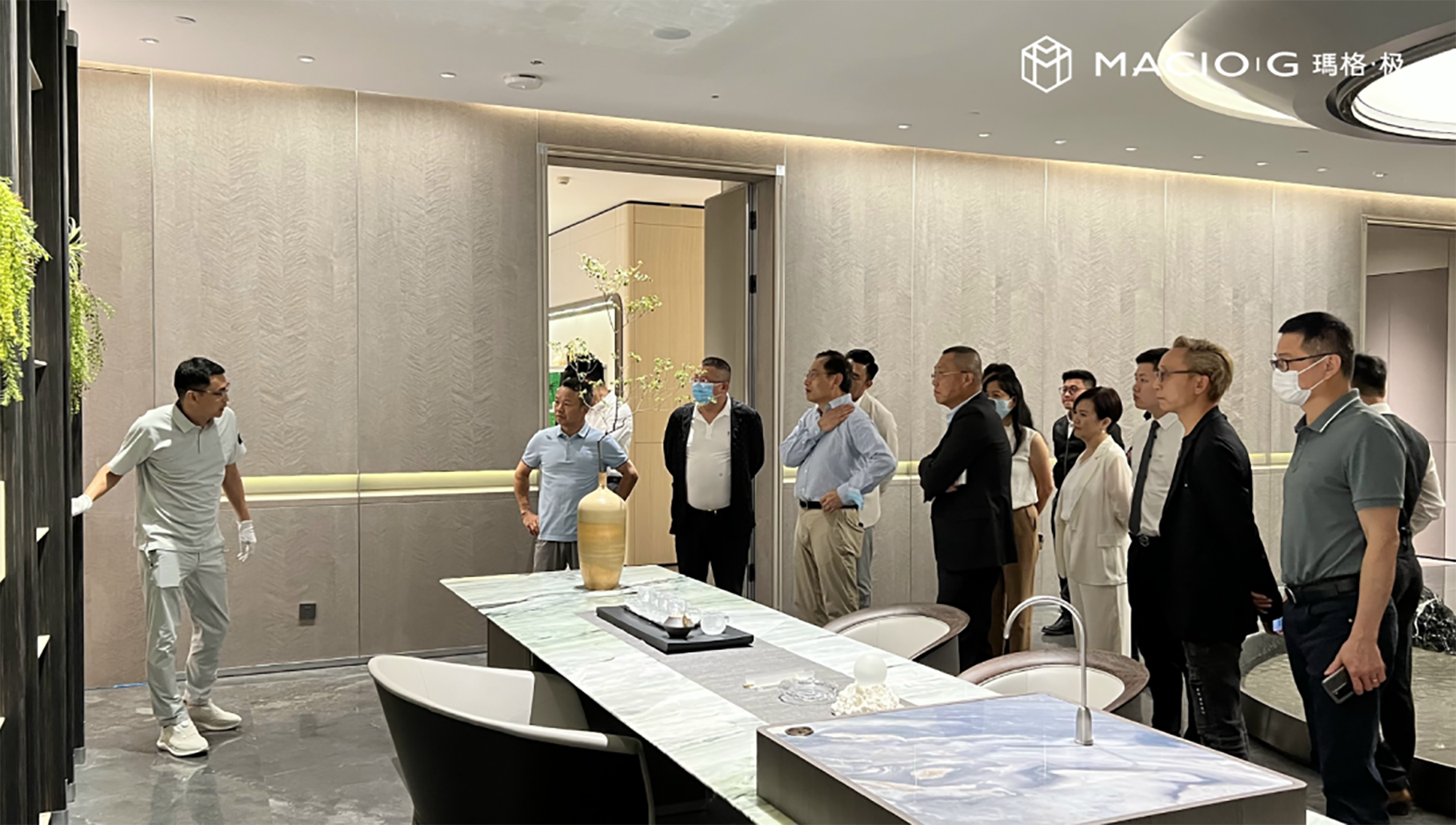 當(dāng)天下午,深圳家協(xié)領(lǐng)導(dǎo)、各家具企業(yè)負(fù)責(zé)人等,首先對(duì)瑪格·極 廣州羅浮宮藝術(shù)旗艦店進(jìn)行參觀考察。在瑪格定制家居董事長(zhǎng)唐斌及團(tuán)隊(duì)接洽和帶領(lǐng)下,體驗(yàn)了“以意式東方·極致造物為理念”的空間與產(chǎn)品,對(duì)于瑪格·極的工藝,嘉賓們交口稱(chēng)贊。借助本次交流考察,唐董就瑪格·極三大系列的產(chǎn)品獨(dú)特設(shè)計(jì),精湛的工藝,以及品牌關(guān)于生活藝術(shù)的探索、心得、創(chuàng)新進(jìn)行現(xiàn)場(chǎng)介紹與分享。